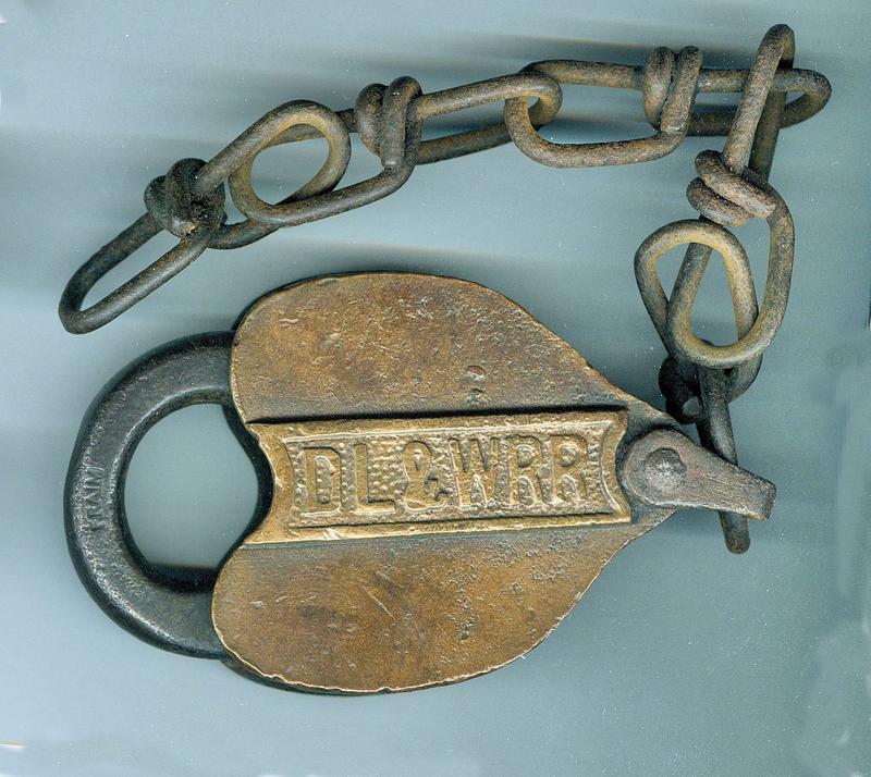 Delaware, Lackawanna & Western RR (LDLW-103) - Brass Fraim heart-shaped switch lock. DL&W RR cast down back. Frozen clevis. Key drop nicely sprung. Tested...SOLD! FRONT BACK