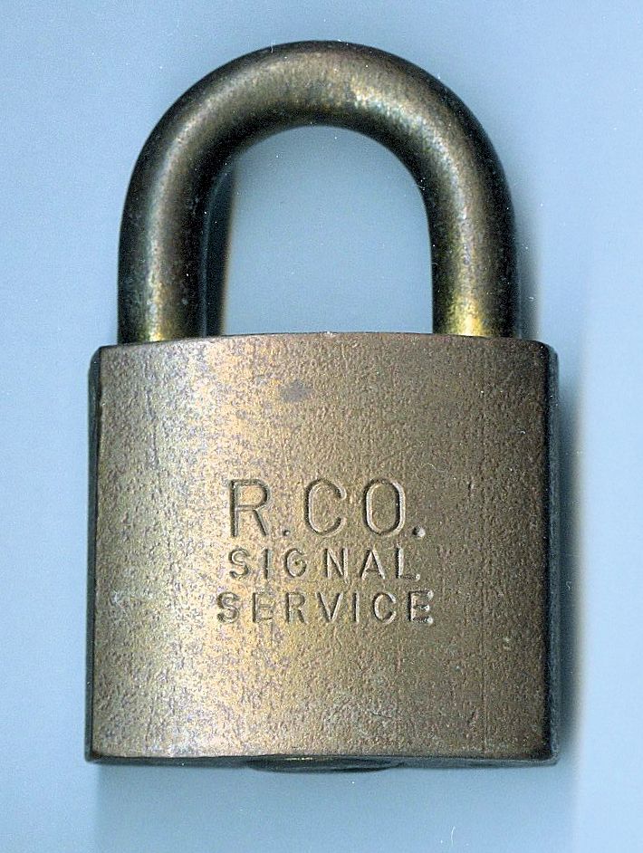 Reading Company - Brass Signal Service Lock by E.T. Fraim. Key drop not sprung and is stiff. Not tested...$25 FRONT BACK